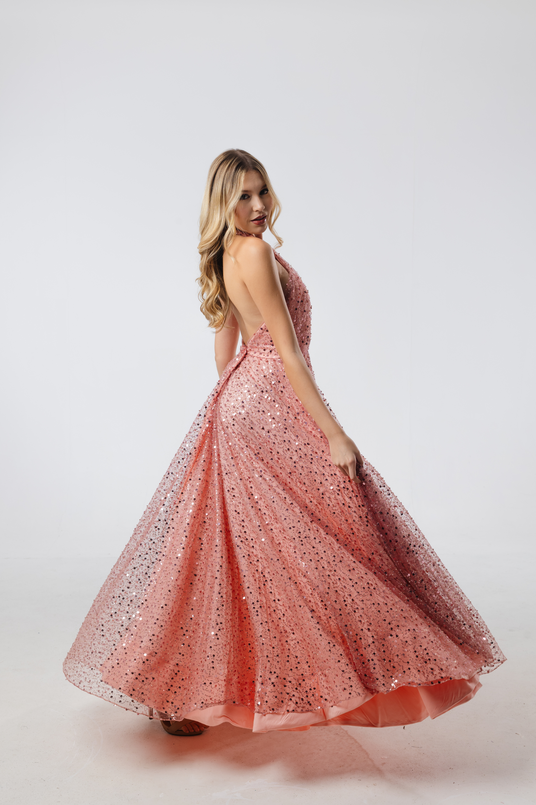 Longo Agilita Rosa Frente Única Bordado Paetê