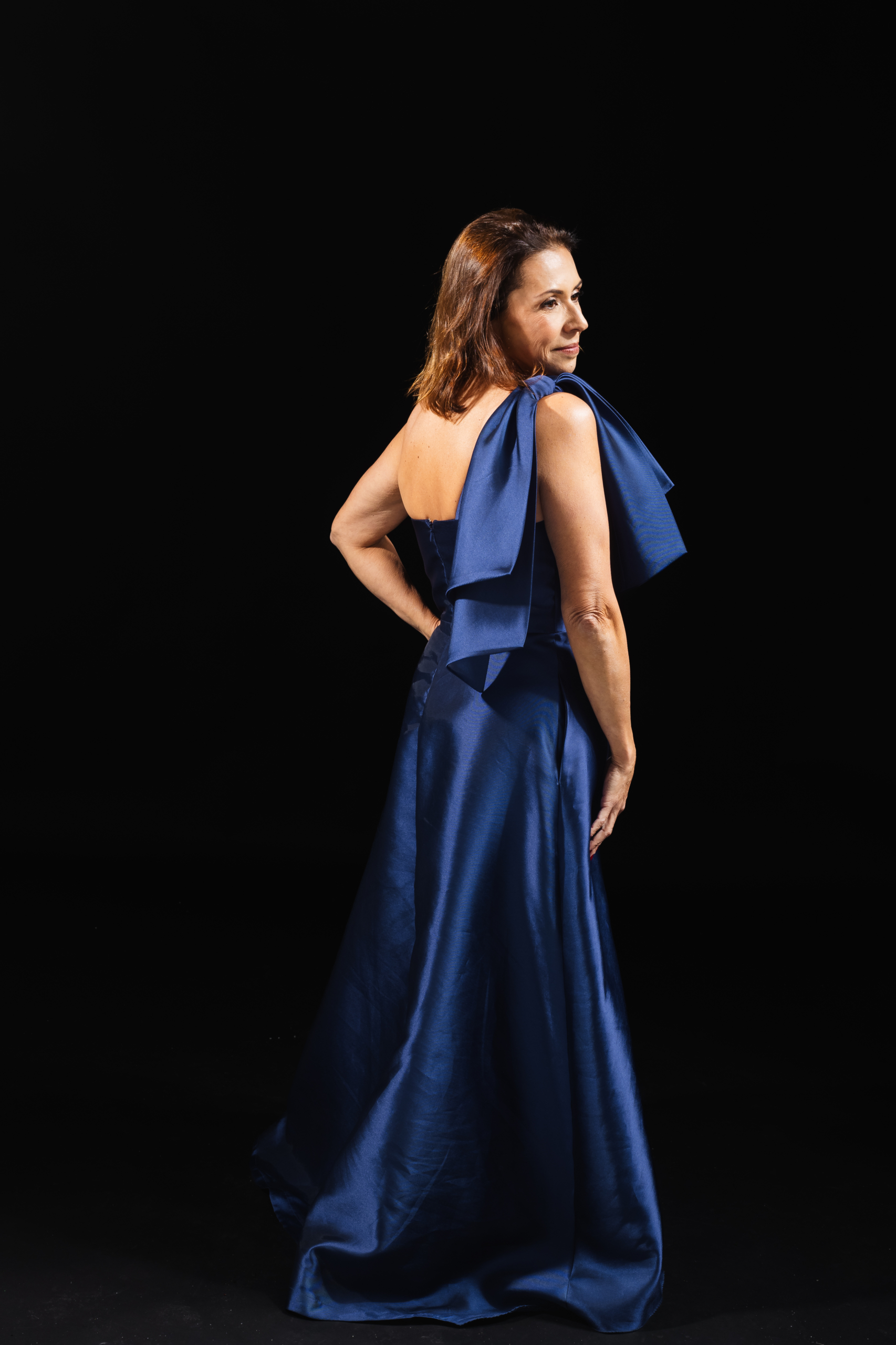 Longo Azul Marinho Ombro Único Com Laço