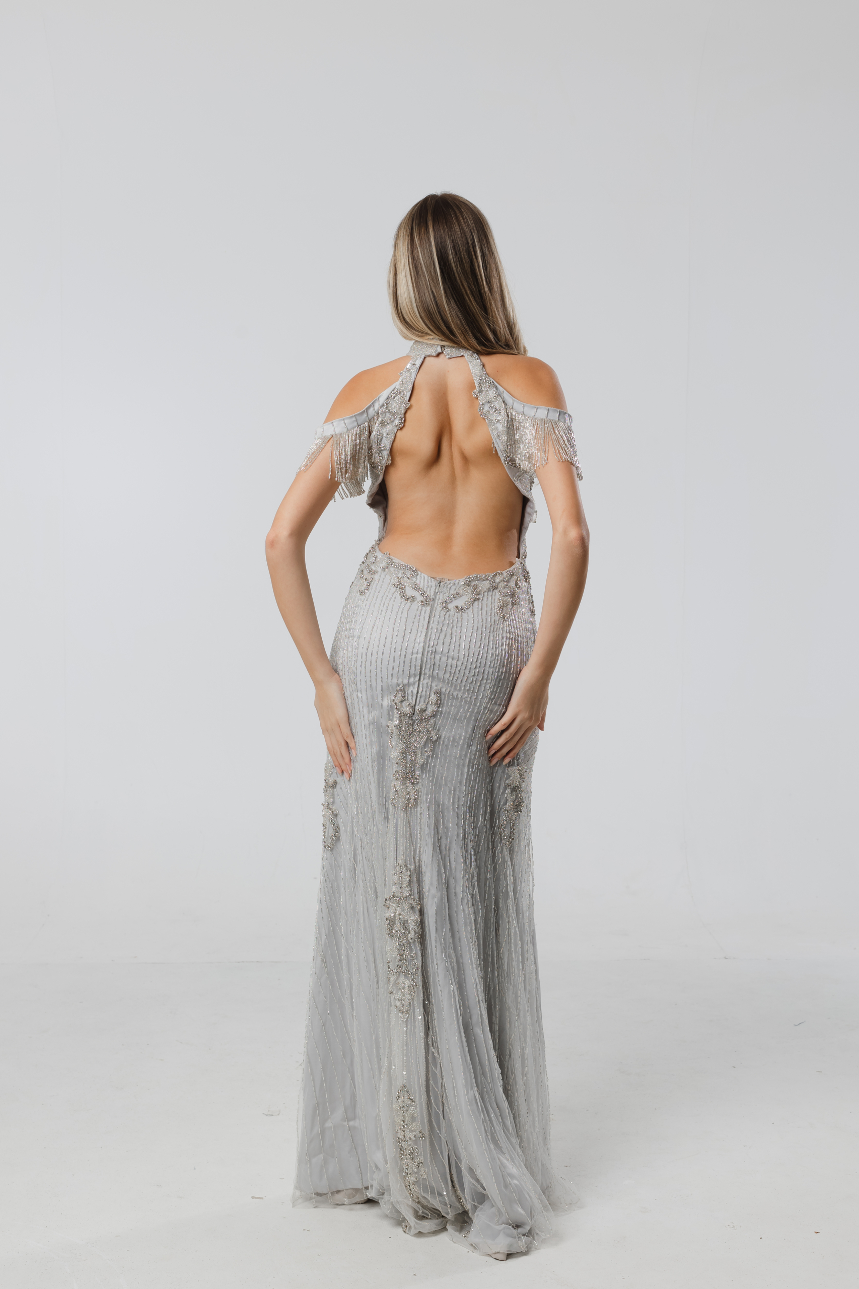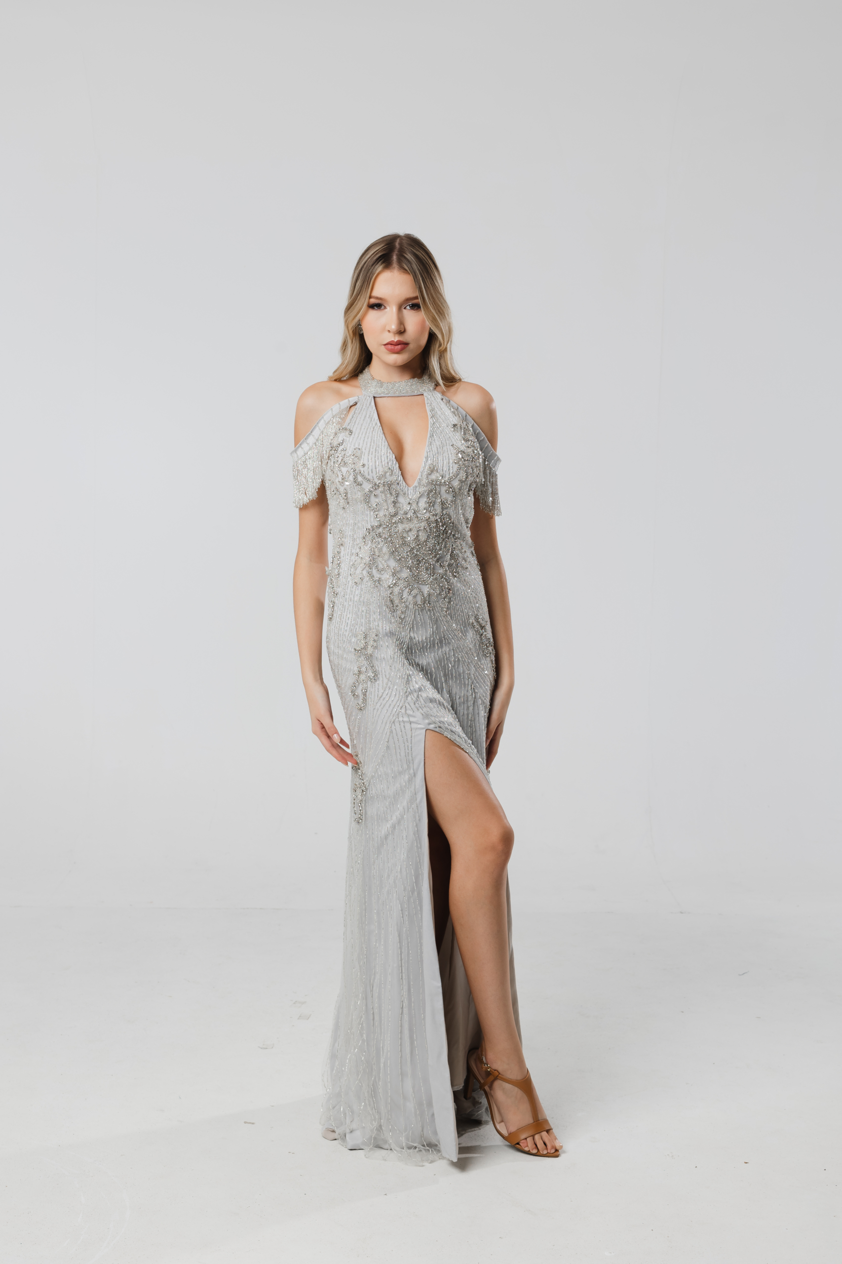Longo Prata Bordado Franja No Braço Olivia Aragão