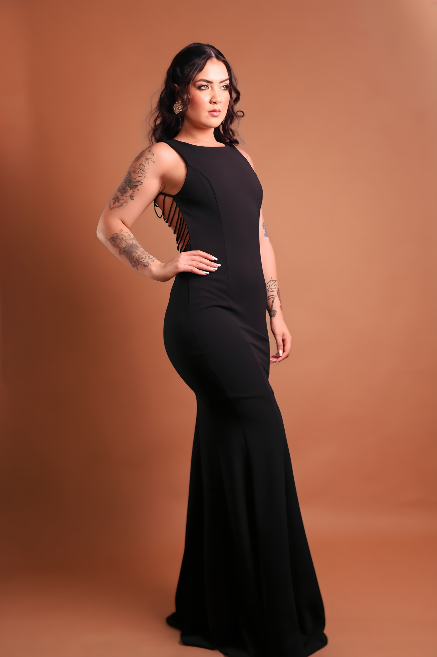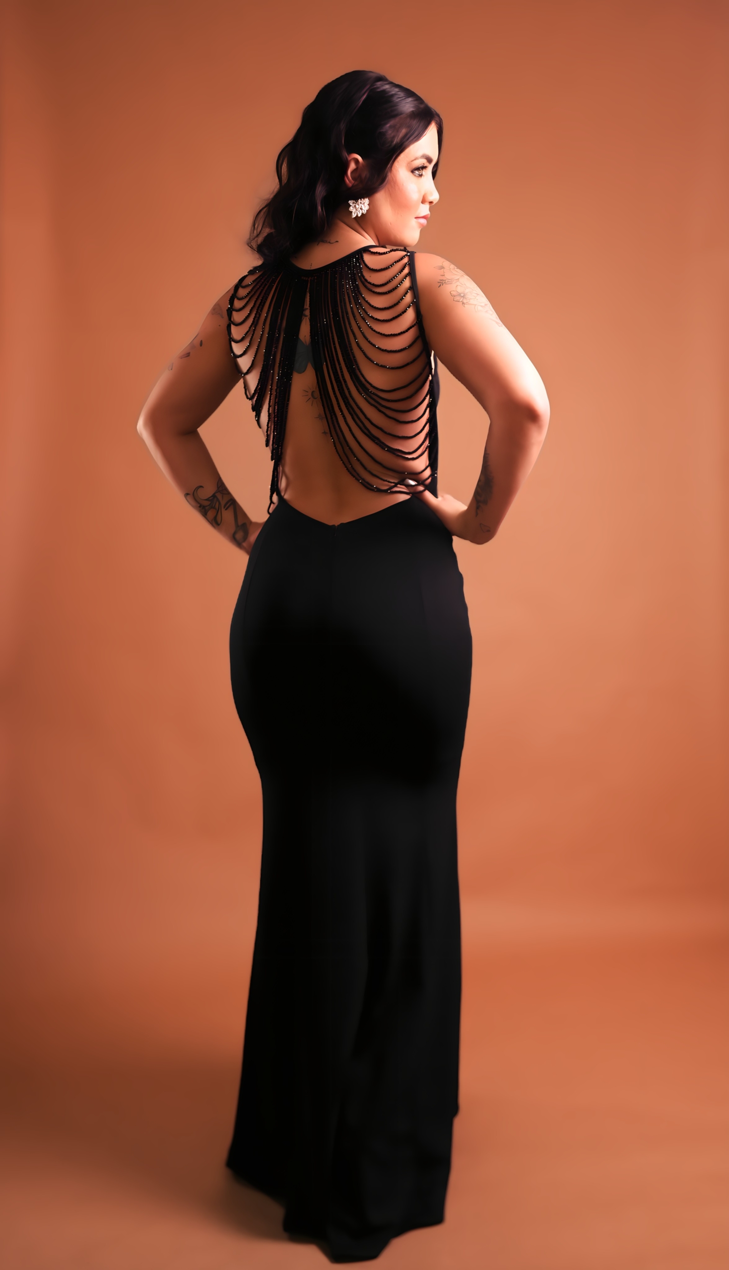 – Decote Profundo Nas Costas Com Detalhes Em Miçangas Caídas
