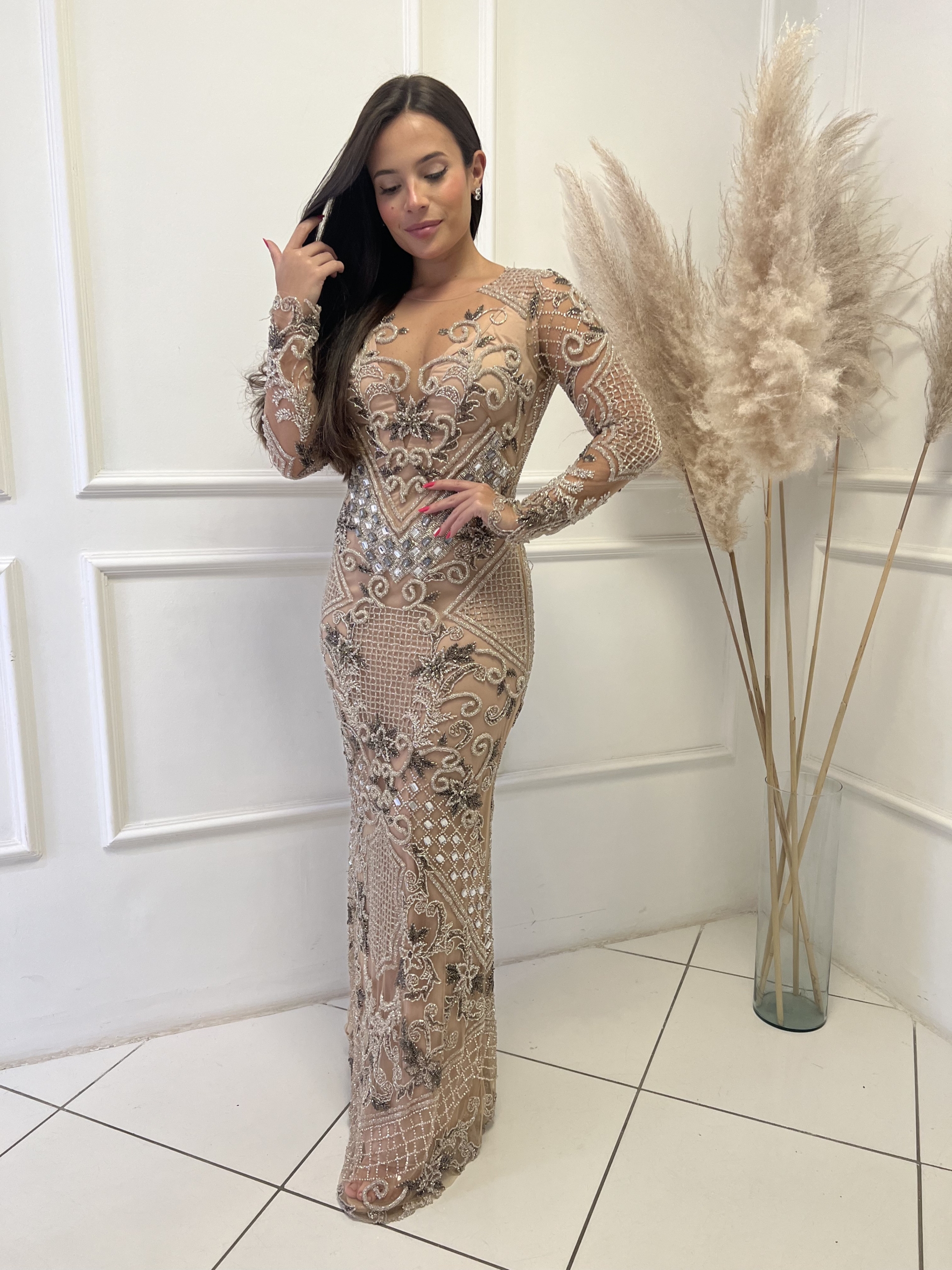 Vestido Nude e Prata Bordado Pedraria – Fabiana Milazzo