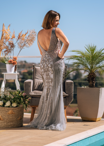 – Bordado Em Canutilhos E Pedras Prata E Grafite