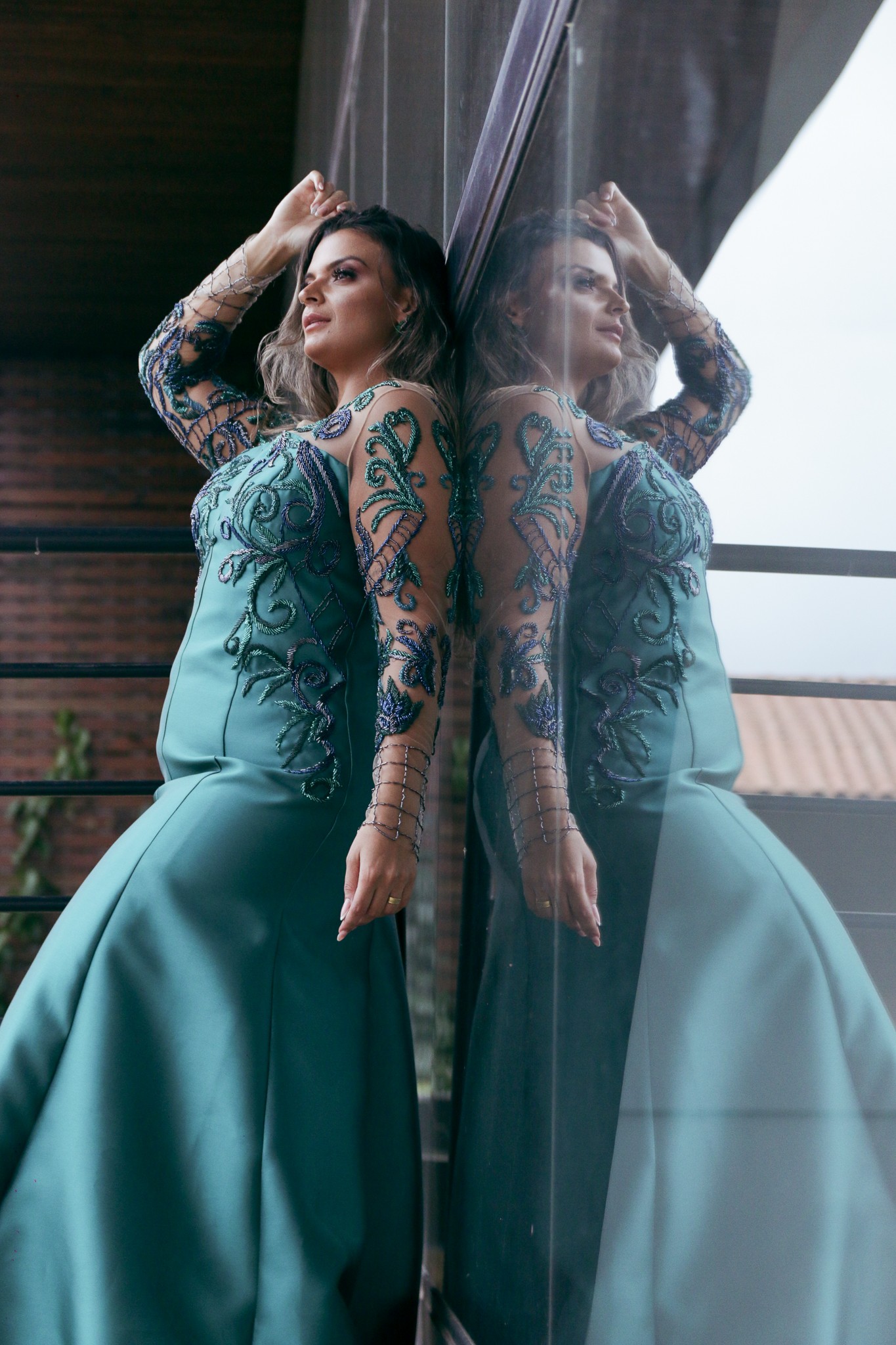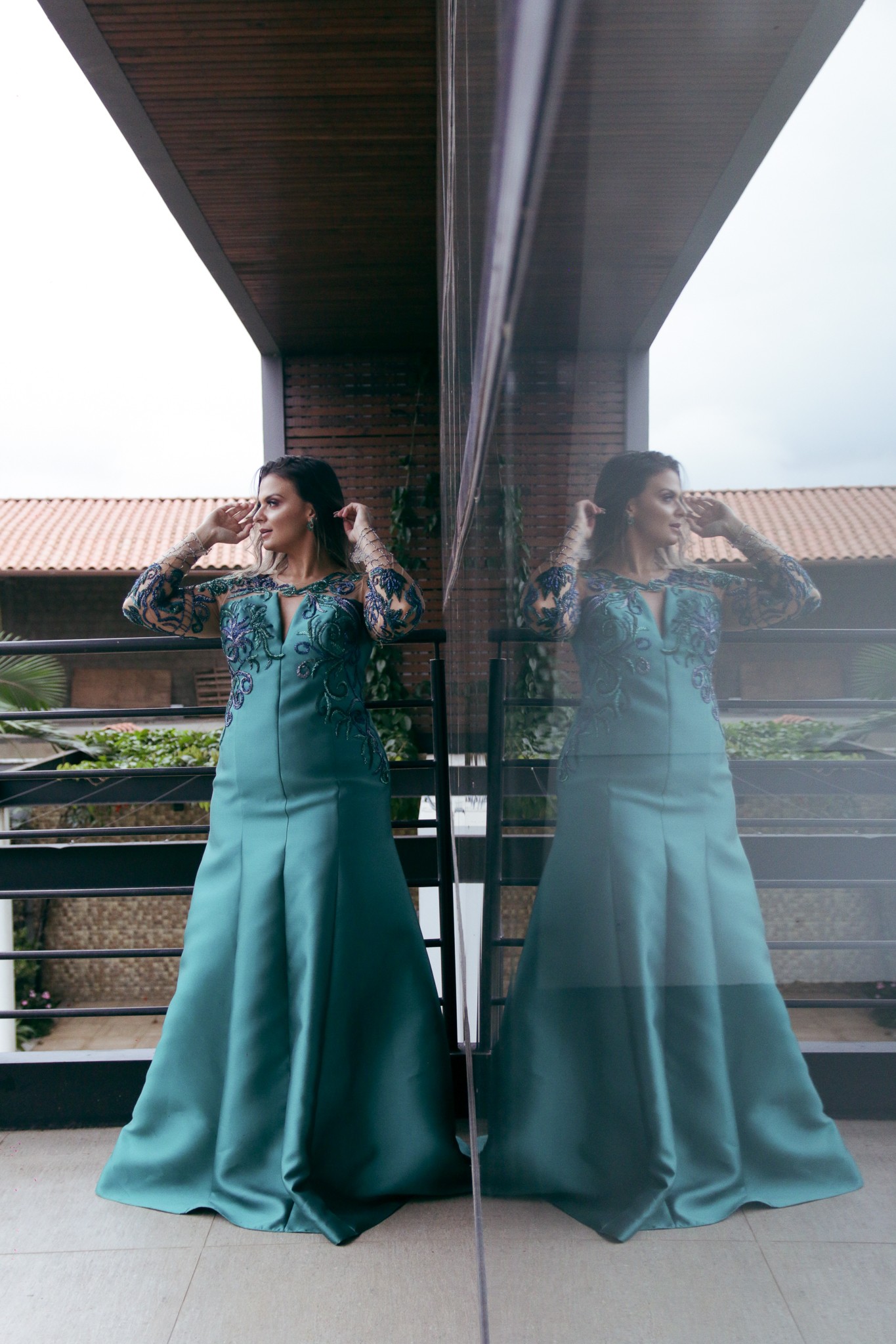 – Corpo E Manga Bordados Em Azul, Prata E Verde