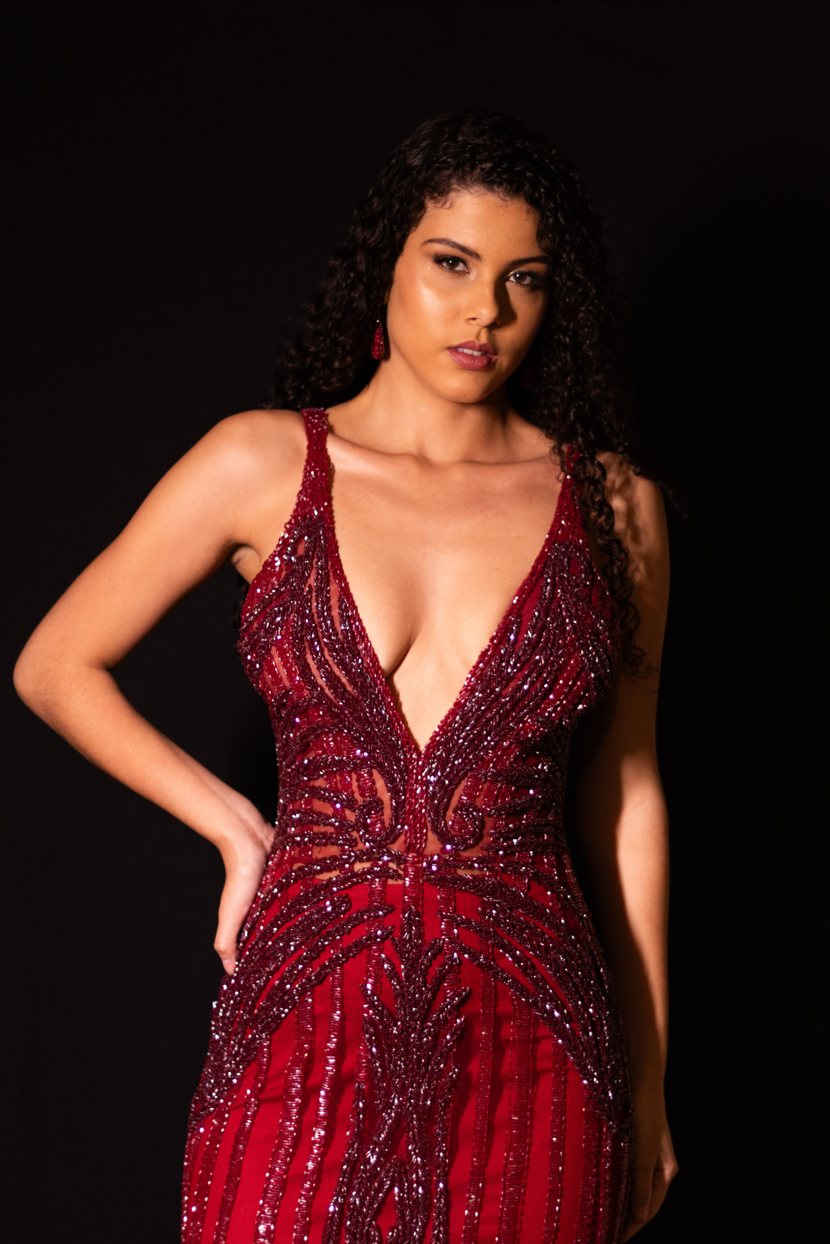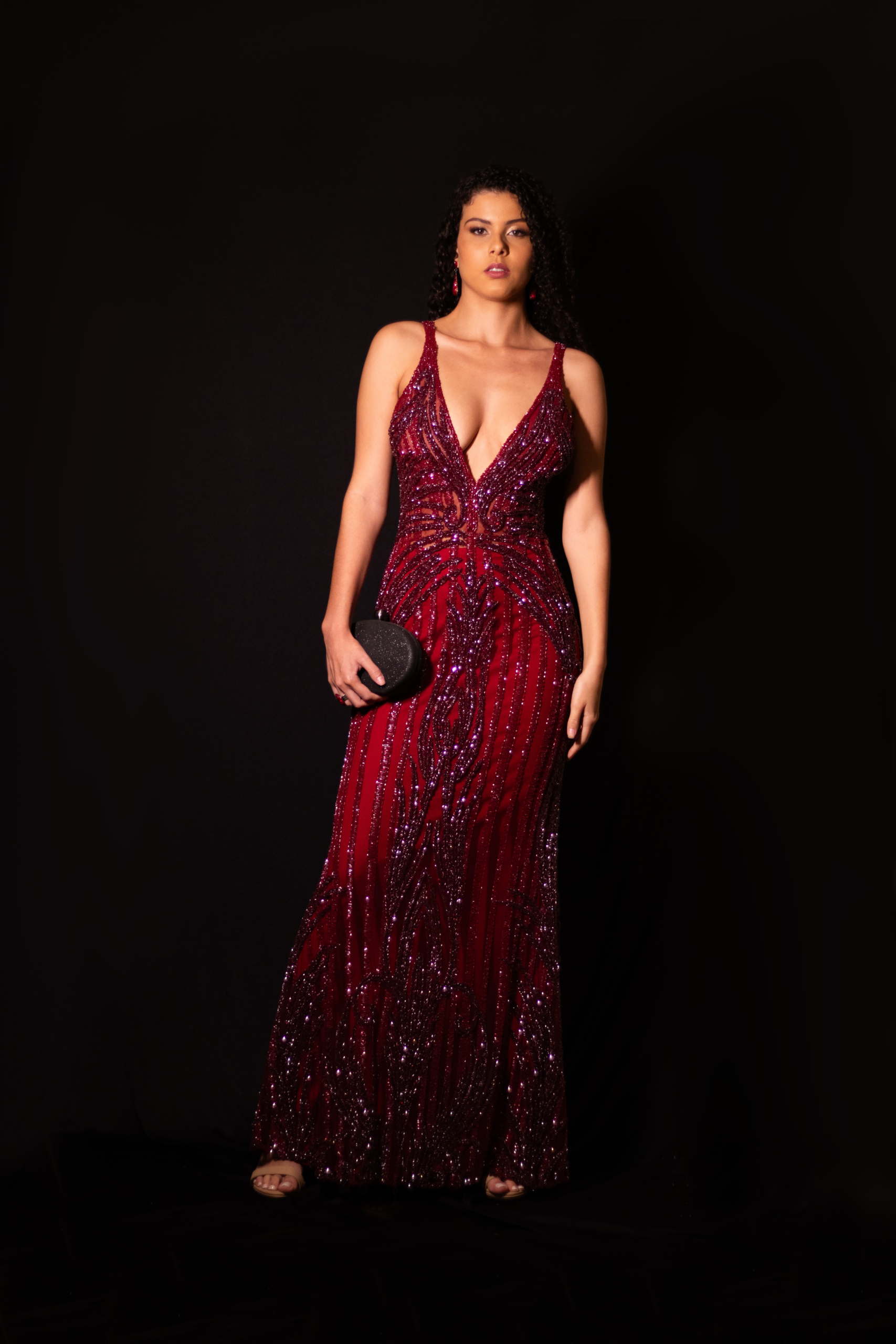 Longo Vermelho Marsala Bordado Onix